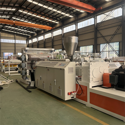 La materia prima mezclada ingresa a nuestra extrusora de doble tornillo a través de un alimentador de tornillo. Bajo la acción calefactora del tornillo, el plástico se funde. El PVC fundido pasa a través de una matriz en T para formar una lámina en bruto.